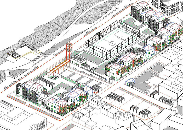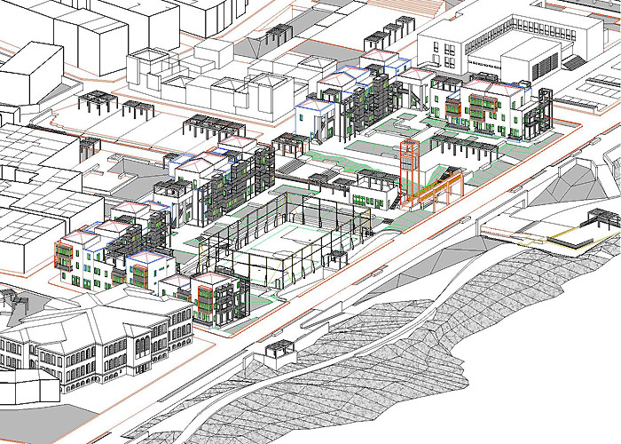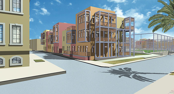 Οι χρήσεις στο Δυτικό τμήμα οργανώνονται με την προσθήκη πολιτιστικών λειτουργιών, εικαστικών εργαστηρίων και άλλων που συνάδουν με το ευρύτερο ιστορικό και αισθητικό πνεύμα που διακατέχει την Παλιά Πόλη και την κοσμοθεωρία των κατοίκων του σύγχρονου Ρεθύμνου. Επίσης, στα νέα κτιριακά κελύφη προστίθεται κατοικία με την μορφή της φοιτητικής κατοικίας - στοιχείο που λείπει από την ευρύτερη περιοχή του Ρεθύμνου , που λόγω του εφήμερου του χαρακτήρα της, της ευμεταβλητότητας και της προσαρμοστικότητας της, είναι σε θέση να ενισχύσει την δυναμική του χώρου δίνοντας παράλληλα ένα παρόμοιο, με αυτόν στην ανατολική Παλιά Πόλη, αλλά πιο νεανικό χαρακτήρα. Τακτοποιείται το θέμα των χώρων στάθμευσης, που διατάσσονται στα υπόγεια των νέων κτιρίων, ελευθερώνοντας την επιφάνεια του εδάφους για τους πεζούς και, επιτρέποντας την φύτευση μεγάλου μέρους της, με σκοπό την θερμική άνεση και την εξοικονόμηση ενέργειας. Αναζητούνται στοιχεία βιοκλιματικής αρχιτεκτονικής στα νέα κελύφη, εξαιτίας και του Δυτικού προσανατολισμού του χώρου μέσω του εκτυφλωτικού μετά το απόγευμα Παραλιακού μετώπου, στα μέλη των παλιών κτιρίων της Αρχιτεκτονικής Παράδοσης του Τόπου της Πόλης, όπως τα καφασωτά, τα κάθετα στέγαστρα, οι πέργολες ("κρεβατίνες" στα Κρητικά) ως στοιχεία υποστήριξης φύτευσης και καρποφόρων φυτών.